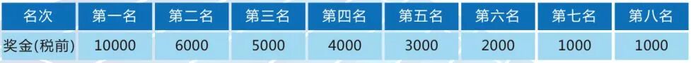 此奖项仅奖励河间籍市民(以居民身份证或户口簿为准),按河间籍参赛运动员成绩排名,男、女分别录取、奖励前六名(按净计时),男女共1.5万元,不足六人减一录取。(奖金额见下表,单位:人民币/元,税前)