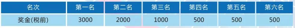 依据中国田径协会关于中国境内马拉松赛事奖金设置及发放规定,本届10KM健康跑项目男、女分别录取、奖励前六名(按枪声成绩),分别获得奖金,男女共6000元,前三名运动员另获奖杯一座。(奖金额见下表,单位:人民币/元,税前)